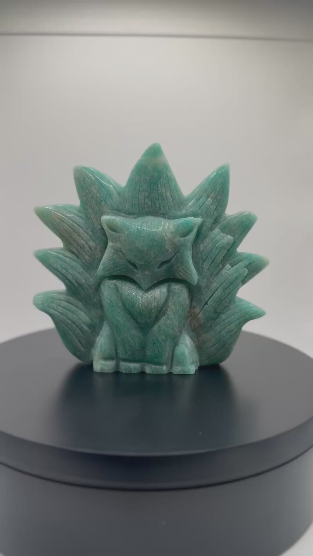 Carved from calming, ocean-toned Amazonite, this stunning 9-tailed fox represents divine intuition, spiritual agility, and the sacred power of transformation. In many traditions, the fox is a shapeshifter — a guide between realms, keeper of secrets, and protector of feminine wisdom. The seven tails signify heightened spiritual awareness, evolving wisdom, and the mastery of one’s own path.