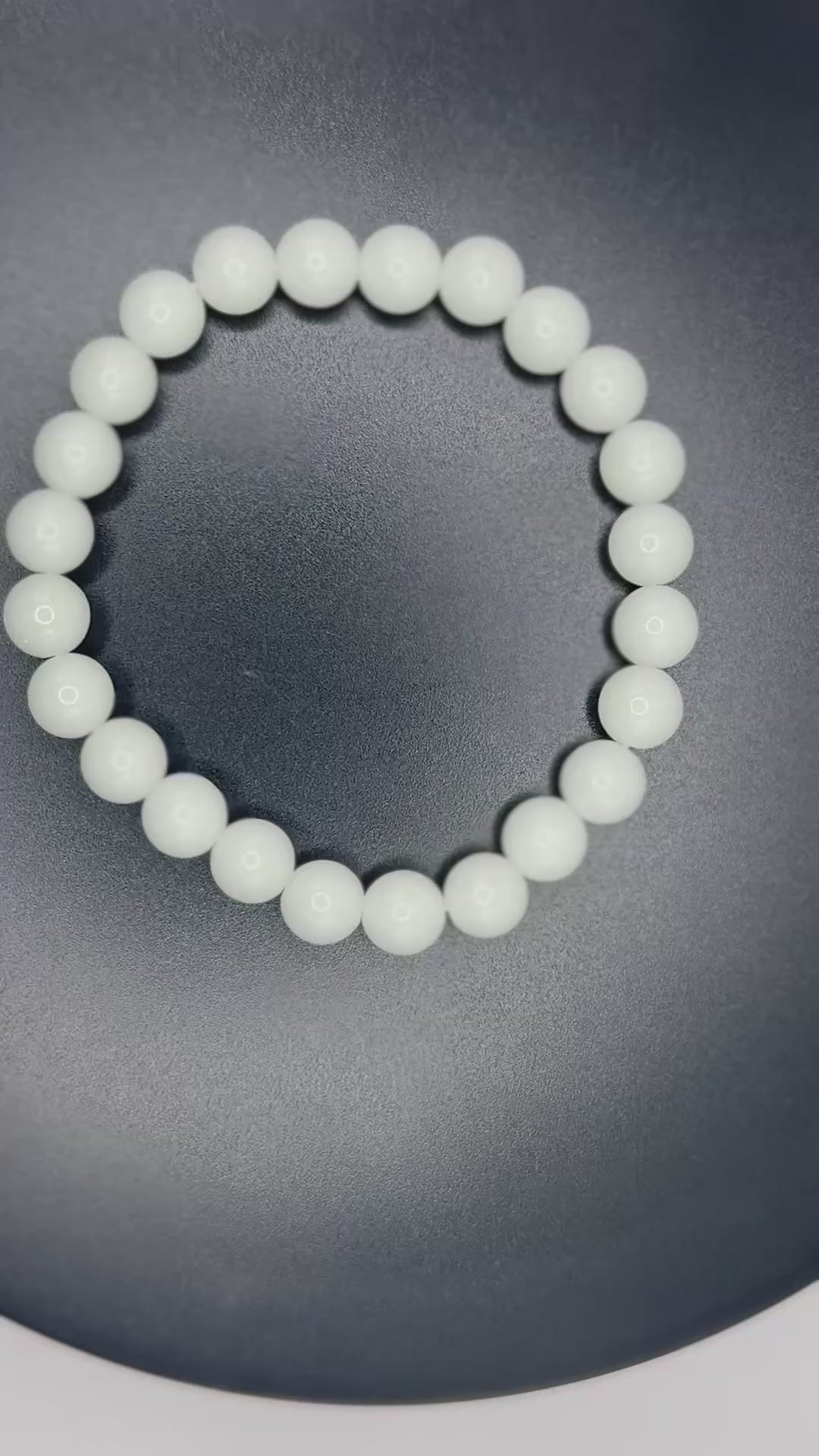 This luminous stretch bracelet features glow-in-the-dark beads with the look of white jade. Hand-strung on a durable elastic band, it's both stylish and fun—absorbing light...
